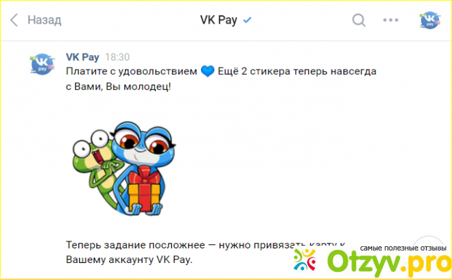 Суть программы - покупаешь товары по акциям, сканируешь чек и возвращаешь часть денег на счет в VK Pay. Плюс - за каждый отсканированный чек дарят прикольные стикеры, которые можно использовать, переписываясь с друзьями. Обычно стикеры так просто нельзя получить, только купить. Еще здесь есть возможность накапливать чекбиты. Но я пока сильно не задавалась вопросом, что к чему. По мере накопления определенной суммы их можно обменять на деньги.