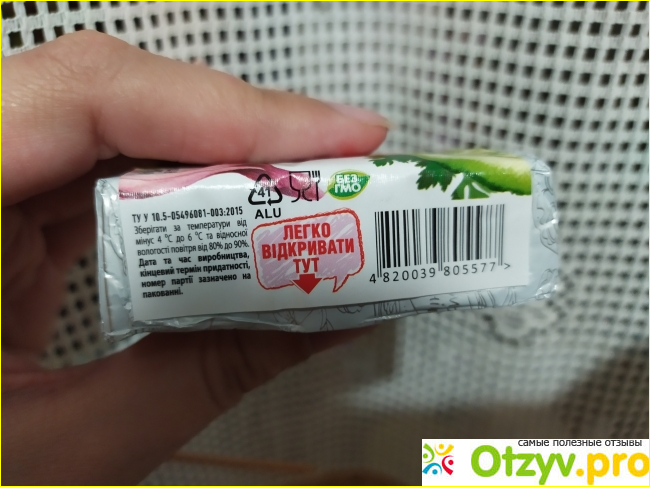 Срок годности указан на видном месте, возле ленточки для открывания.