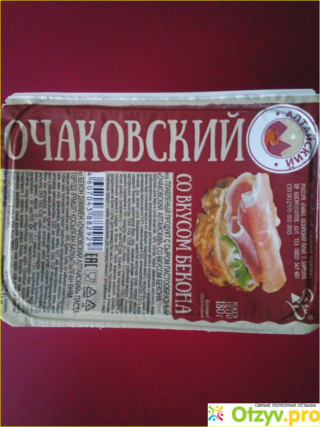 Алтайские молочные продукты, даже если это плавленый сыр, вызывали доверие в моей семье уже давно. Сегодня пишу о плавленом продукте с сыром, пастообразном, со вкусом бекона. "Очаковский" продаётся в пластиковых баночках, масса всего 180 граммов. Мягкой консистенции, предназначен для намазывания на хлеб.