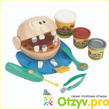 Детский набор состоит из трех баночек пластилина с приятным запахом, пластиковых стоматологических инструментов, головы мистера и подставки для головы. Игра получается очень интересной, забавной и увлекательной. Пластилин очень мягкий, не пачкает руки и имеет безопасный состав.