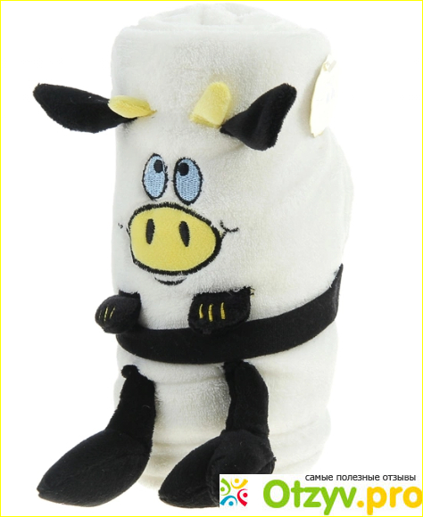 Полностью назывался Это детский плед с игрушкой Муму. Но игрушки там были конечно не только своеобразные коровы, ещё я нашла симпатичную Свинку, и собачку. Если честно, то корова мне приглянулась больше всего. Очаровательные добрые глазки, и яркая расцветка просто покорили меня. Что касается качества пледом, конечно он не самый тёплый, Это скорее всего и таки летний вариант. Но на диванчике смотрится всё равно очень красиво. Его очень удобно стирать, Если честно я боялась что после стирки он может измениться в размерах, или скататься в катышки. Я его стирала очень бережно, И вопреки моим страшным ожиданием ничего подобного не произошло.
