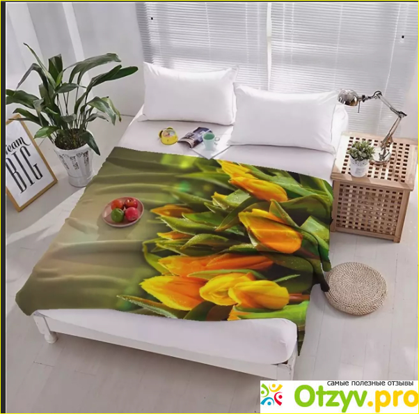 Стоит мне просто накинуть плед поверх не застеленной постели — и сразу в комнате все становится аккуратно: не видно постельного белья, кровать приобретает ухоженный вид. Тем более, что плед флисовый тамитекс тюлип имеет красивый яркий рисунок.