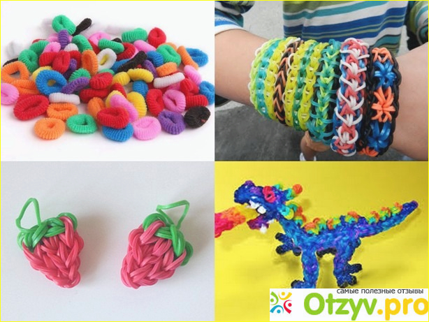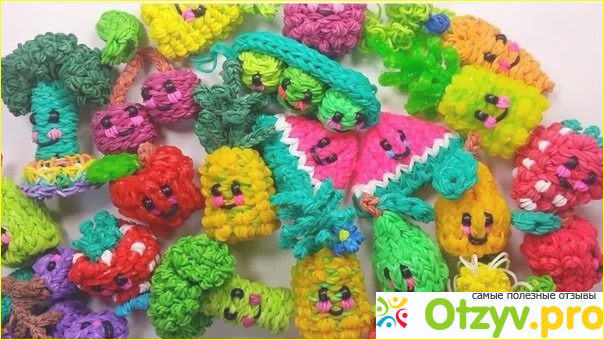 Порой, кажется, что из таких аленьких резиночек можно сплести все что угодно, начиная от каких-то совсем простых браслетиков до элементов одежды. Дети могут плести себе самые различные браслеты и ожерелья на шею, добавлять туда подвесочки, чтобы украшать свои изделия. Можно плести различные фигурки - плоские и объемные, большие и маленькие. Также очень красиво получается одежда для кукол и различные аксессуары, фрукты и овощи для игры с куклами. Есть люди, которые даже плетут купальники, платья и другую одежду из резинок. Все изделия получаются необычными, яркими и красивыми.