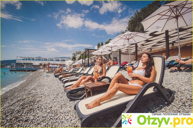 Здесь можно взять в аренду шезлонги (естественно, платно, и не очень дешево), также предусмотрены навесы и зонтики, чтобы полежать в тенёчке.