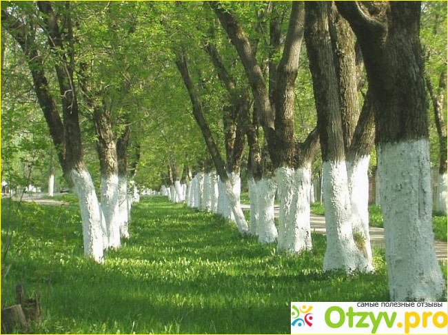Приятно зайти в парк или свой собственный сад, где чистота и порядок, и все деревья окрашены в белый цвет. Эстетично? Конечно.