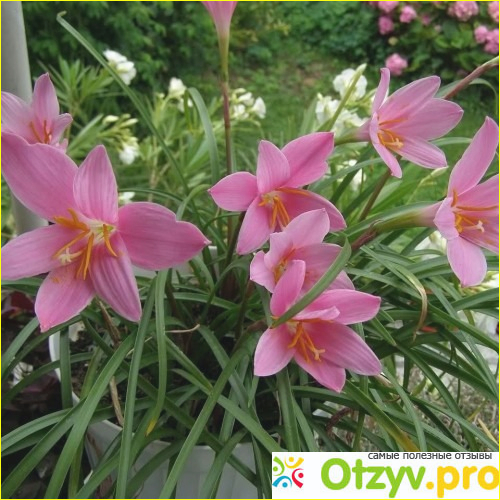 Итак, в период для зефирантуса с сентября (октября) по март. Прекращаем полив, обрезаем листья и ставим в холодильник или помещение с должной температурой. Когда наш период заканчивается. снова начинаем полив и возвращаем выскочку на его излюбленное место. И в апреле уже должны появиться новые листья. Летом по возможности высадить в открытый грунт на яркое солнце. Я просто пересаживаю в большие лотки и переношу цветок на открытый балкон. Уже к концу сезона в горшках появляются крупные луковицы, которые дадут цветки в следующем году. С вегетативным размножением у розовой выскочки проблем нет), весь горшок будет в луковицах. И перед тем как убрать цветок на период покоя, просто рассаживаем луковицы в землю, обеспечиваем удобный тепло-яркий микроклимат и ждем до следующего года.