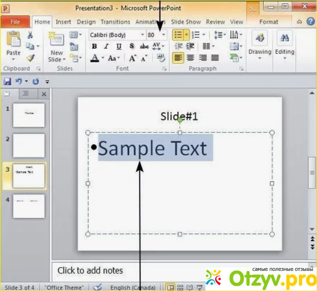 В PowerPoint увеличение размера шрифта также происходит легко: