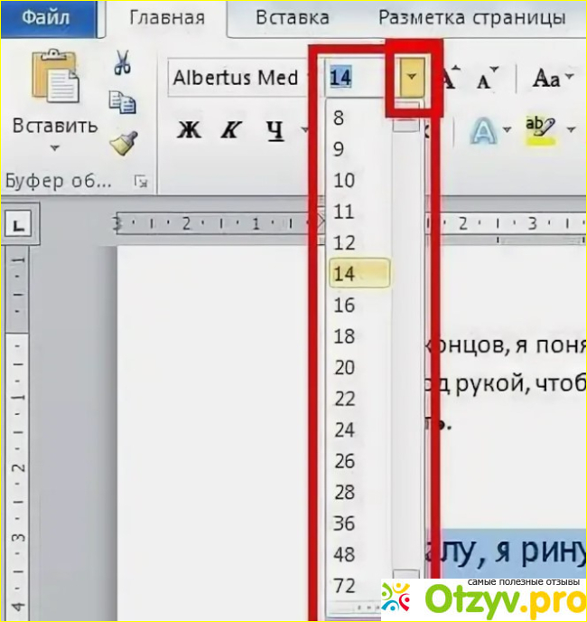 - В верхнем меню выберите выпадающий список "Размер шрифта" и выберите нужный размер.