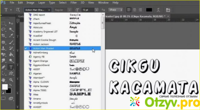 В Adobe Photoshop увеличение размера шрифта происходит следующим образом: