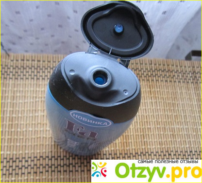 Внутри флакона с гелем содержится вещество голубого цвета, средней густоты. Открывать упаковку и применять его удобно. пенится содержимое хорошо, не вызывает сухости кожи после смывания.