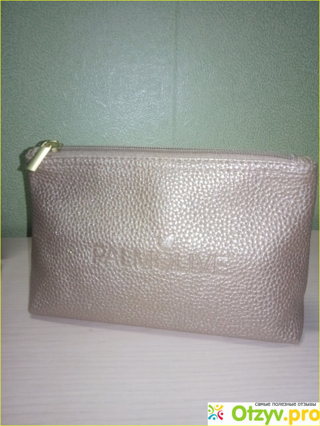 Косметичка выполнена из экологический кожи, с фирменным названием ее бренда Palmolive.