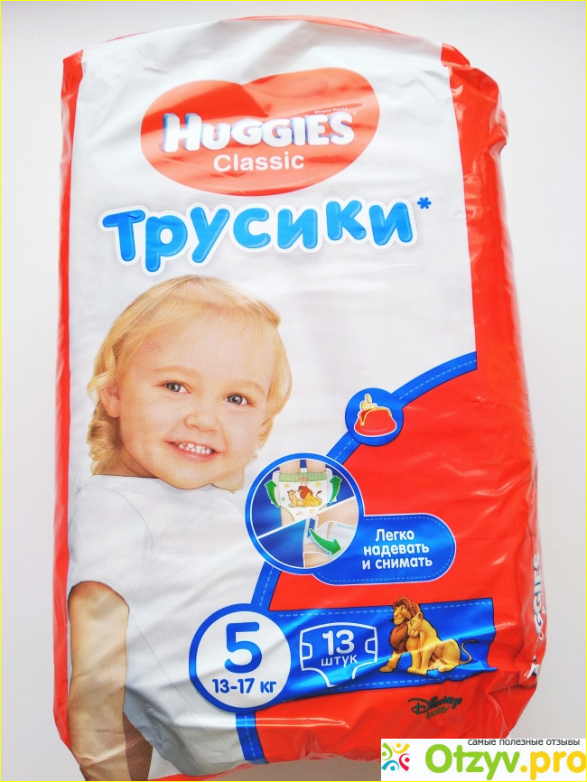 Размер трусиков 5 соответствует весу 13-17 кг. В упаковке трусиков 13 штук.