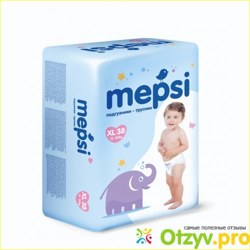 У Mepsi очень красивый дизайн упаковок, на каждый размер свой зверь. На нашей пачке слоненок. Купила я размер XL (12-22 кг.) для нашего веса 12300 они просто идеальны.