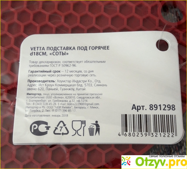 И в заключение, я хотел бы отметить, что подставка под горячее "Соты" производится компанией Vetta, которая известна своим качеством и надежностью. Это дает мне уверенность в том, что я приобрел продукт, который прослужит мне долго и надежно.