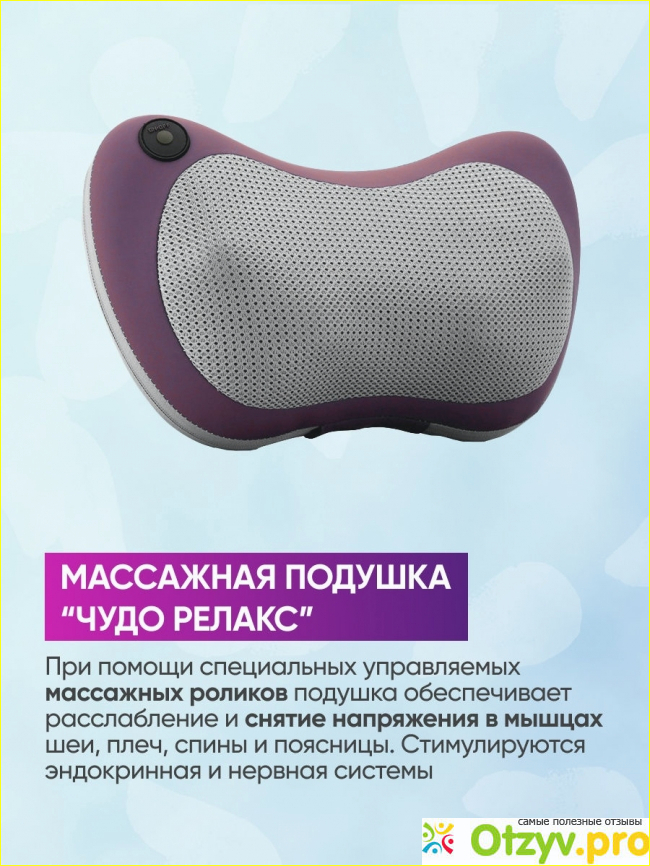 В данной статье речь как раз пойдет об одном варианте достаточно компактного массажера для домашнего использования. который называется Подушка чудо релакс.