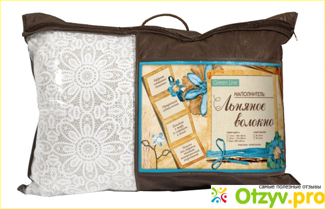 Обзор: Подушка Green Line «Вологодский лен» упругая,приятная на ощупь,красивый чехол(наволочка)