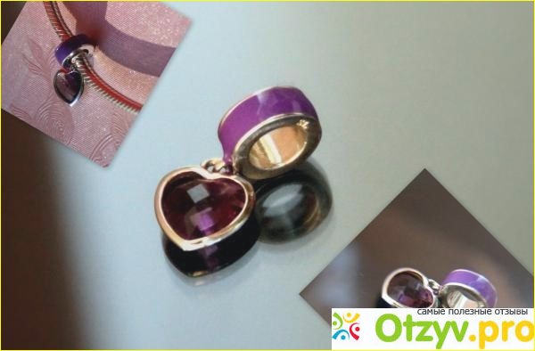 Шармы с фианитами наиболее оригинально смотрятся, потому что этот камень играет при свете. А обычные круглые шарики мне не очень нравятся: напоминают детские бусинки. Есть подвески, к которым, в свою очередь, ещё что-то прикреплено - вот такое сердечко, например.