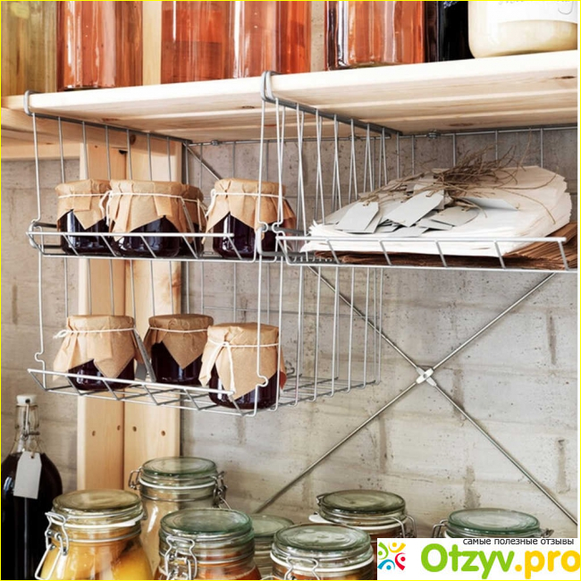 Что можно хранить в подвесных корзинках? То же самое, что на обычных полках. Только так мы еще экономим пространство.