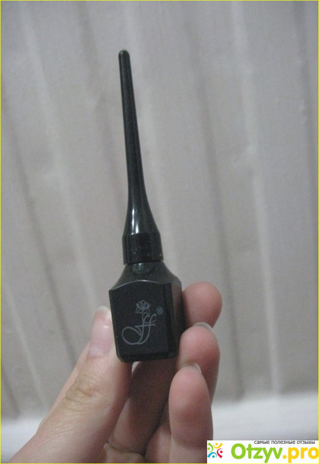 Подводка черного цвета, как вы уже догадались. Кисточка у нее не мягкая, а твердая, подобно стержню фломастера. Только ее надо окунать постоянно во флакончик, чтобы достать саму жидкость.