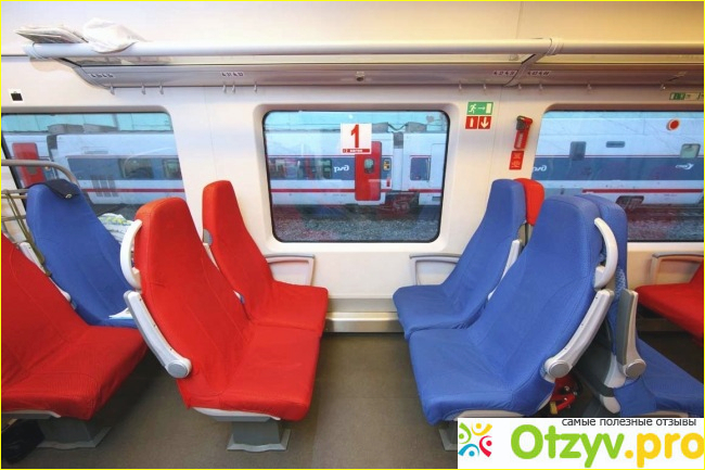 Вагоны поезда «Ласточка» — это два ряда кресел с проходом между ними. Нечётные места всегда расположены возле окна. При покупке билета, лучше всего заранее посмотреть схему поезда. Обратите внимание на два очень важных момента: в каждом блоке из пяти вагонов различна схема головных вагонов (№ 1 и № 5) и тех, что между ними. Туалеты расположены в головных вагонах, поэтому сразу подумайте, где вам удобнее сидеть — у окна или ближе к проходу. Все сумки и чемоданы в «Ласточках» кладут на специальные стойки для багажа (они обязательно есть в каждом вагоне), а ручную кладь можно закинуть на верхнюю, багажную полку. В вагоне есть несколько розеток. Еще там не очень опрятные чехлы на креслах, сразу видно что пассажиров по данному направлению ездит довольно много и чехлы уже немного "подустали" от этого. Все вагоны кондиционируются, зимой используется воздушная система отопления. И, надо отдать должное, там довольно тепло и совершенно не мерзнешь.