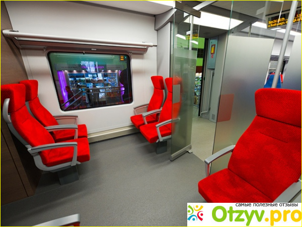 Я ехала в вагоне, где места были расположены "два на два" (есть расположение "три на три" и "друг за другом"), сиденья очень удобные, для ног много места, проходы широкие, во время посадки нет столпотворения, как в обычных поездах, где люди с багажом не могут разминуться.