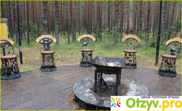 Выглядит потрясающе сказочно. Пройдя через входные ворота, вы попадаете в живописный сосновый бор, на очень ухоженную и красивую территорию, где на "Тропе Сказок" по заранее продуманной программе, вас развлекают шесть сказочных героев включая: Мышку Норушку, Бабу Ягу, Шишечку лесную, Серого волка и т. д.