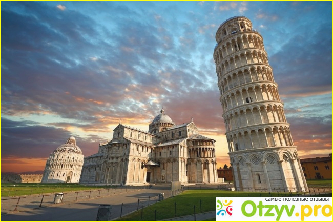 Всемирно известная Пизанская башня интересна тем, что построена не вертикально, а с некоторым наклоном. Ее высота почти 57 метров.