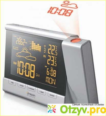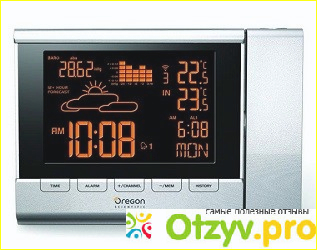 Первое, что хочется подчеркнуть, это дизайн, в котором выполнена погодная станция для дома: стильный корпус цвета металлик, большой удобный экран, интересное решение с проектировкой на стену. Во-вторых, Oregon Scientific обладает всеми функциями, которые необходимы: термометр, барометр, проекционные часы, будильник - все в комплекте и в идеальном рабочем состоянии. Данные точные, возможные отклонения минимальны. Сверяли и с ртутным градусником и с другим барометром. «Ловит» погоду отлично, через стену «пробивается».