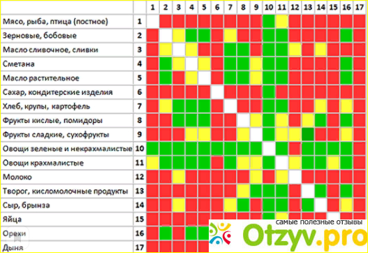 При составлении меню руководствовалась таблицей сочетания продуктов