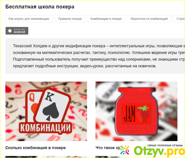 Как видно из информации о сайте, площадка работает с 2017 года, а с 2019-го они стали заниматься размещением обучающих материалов по покеру. Именно раздел "Школа покера" тут интересен. Если пролистать статьи, можно понять, что есть информация и для новичков - им описываются базовые термины, и для профи.