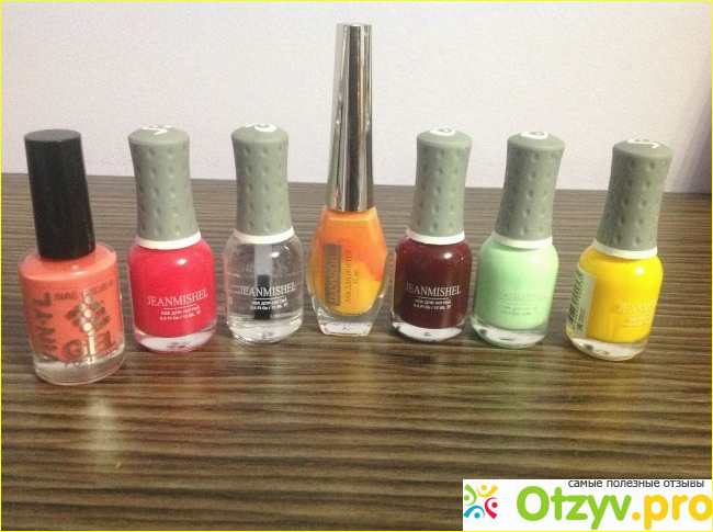 В основном это марка JeanMishel, но бывают и другие попадаются и, что удивительно, эти лаки замечательного качества для своей невысокой цены! До этого я еще покупала там чудную стеклянную пилочку для ногтей, даже с чехольчиком, но фото приложить не могу, но вот моя небольшая коллекция лаков из этого магазина: