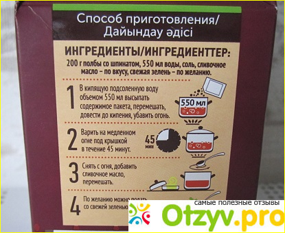 Внутри коробки находилась целлофановая упаковка с полбой. Не заметила в ней сора или посторонних включений.