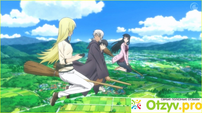 До выпускного девушка будет жить у родственников и ходить в новую школу. Аниме доброе, умиротворяющее и приятное к просмотру. Чинацу была в недоумении, когда Макото летела на метле. У Макото проблемы с пространственным ориентирование, вечно теряется в трех соснах. Новенькая пытается найти общий язык с одноклассниками. Одноклассница Нао немного в ступоре от способностей Макото. Во второй серии пришел разносчик весны внешне странный персонаж. Жанр этого аниме повседневность. Позже в гости пришла старшая сестра Макото тоже ведьма. Постепенно Чинацу привыкла к необычным гостям, полетам и жизни соседки ведьмы. В аниме 12 серий по 22 минуты. История закончилась красиво и многообещающе. Я надеялась на продолжение. Аниме создано по черно-белой манге.