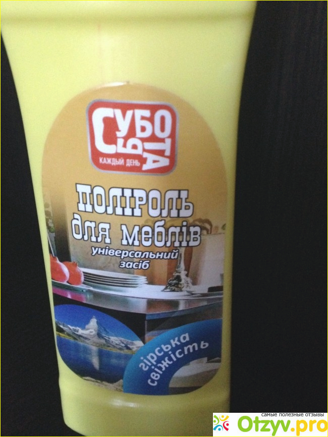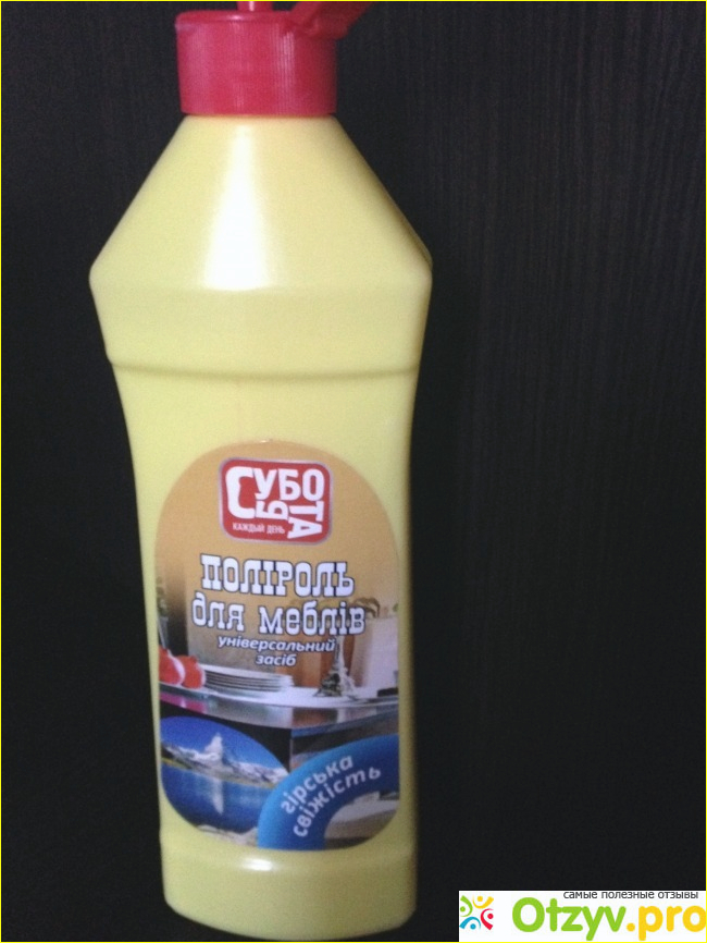 И тут сделка с совестью, то ли купить спрей и пользоваться баллончиком более полугода и получая при том не самый ужасный запах в квартире. То ли купить жидкость, которая воняет ужасно, но по деньгам это более практично, чем спрей. Во время закупки химии для дома решила найти компромиссный вариант и купила Полироль для мебели "Горная свежесть" торговой марки Суббота.