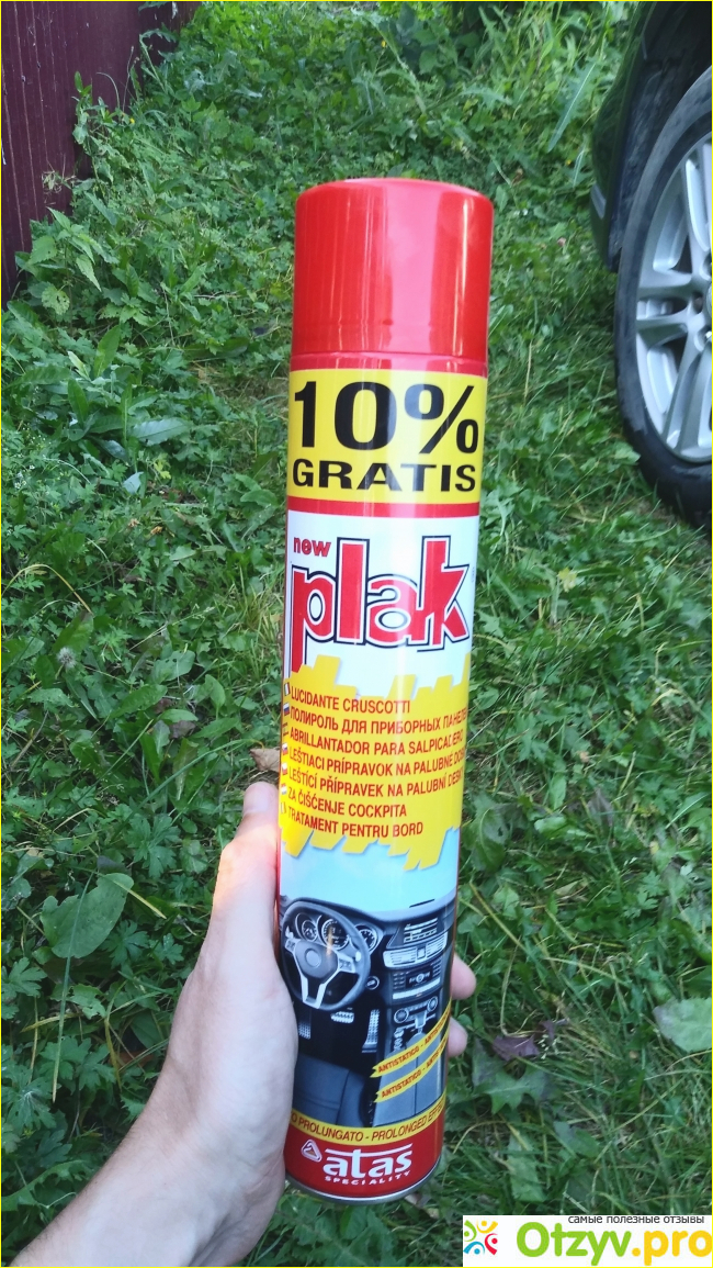 Периодически появляется желание придать немного свежести приборной панели и другим пластиковым элементам салона автомобиля. Для этого приобрел полироль фирмы Plak. По инструкции надо распылить на поверхность с расстояния 20 см и растереть тряпкой.