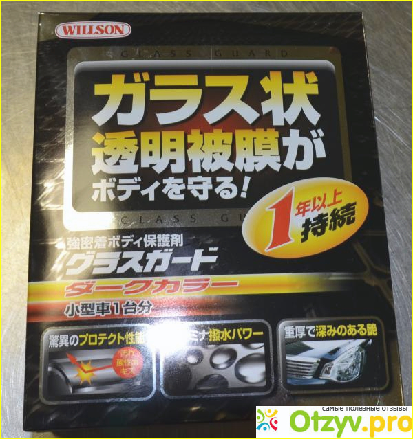Производитель этой полироли- Япония, переводится это с английского, как стеклянный защитник кузова, якобы должен был защищать корпус машины от пыли, грязи, царапин, образуя пленку оттталкивающую на всех поверхности кузова машины, от которой должны были бы отскакивать капли грязи, дожда и прочего, кузов остается в идеальном состоянии.