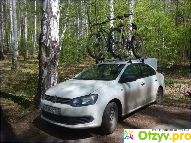 На верхнюю часть крыши автомобиля отец докупил крепление, тоже очень полезная и приятная вещь. Он увлекается велоспортом и участвует в соревнованиях, так с другом они периодически на крыше автомобиля фольксваген поло перевозят 2 велосипеда.