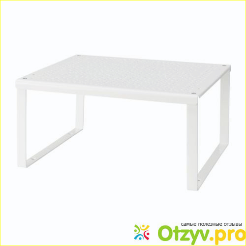 Цвет белый. Материал из которого изготовлена полочка-сталь, с пигментированным порошковым покрытием. На полочке имеются дырочки для лучшей вентиляции.