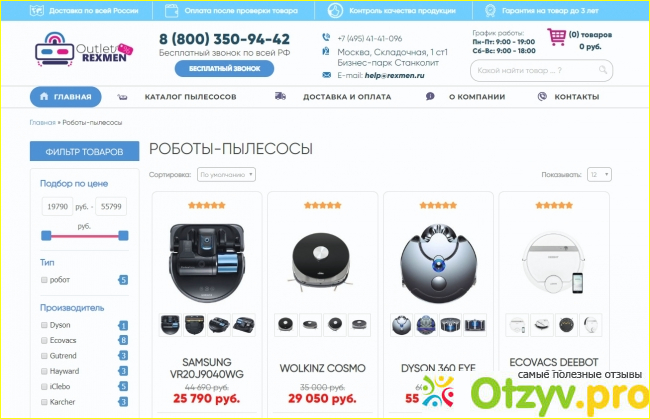 Просмотреть каталог интернет-магазина Rexmen.ru и подобрать модель по производителю, параметрам уборки и согласно выделенному бюджету. Клиенты в отзывах отмечают, что в предложенном ассортименте каждый найдет бытовую технику по своим запросам. Можно купить модели следующих брендов: Karcher, iClebo, Xiaomi, LG, Samsung, Yamada, Dyson, Philips, Neato, Tsunami и другие. Сотрудники сайта обращаются внимание на низкие цены на бытовую технику, которые объясняются работой напрямую между производителем и покупателем.
