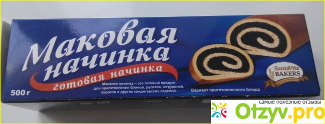 Оказалось, что это готовая маковая начинка, аж целых 500! граммов, а не чайная ложка на булку размером с ладонь, упакованная как батон вареной колбасы в пленку, даже проволочкой хвостик связан. Сладкая, ароматная! Такую делала моя бабушка для именинного или Новогоднего штруделя. Кстати, на коробке тоже написано про бабушку, такие теплые добрые слова…, а еще, там написан способ приготовления этой вкусноты на заводе и нигде-нибудь, а в нашем Севастополе!