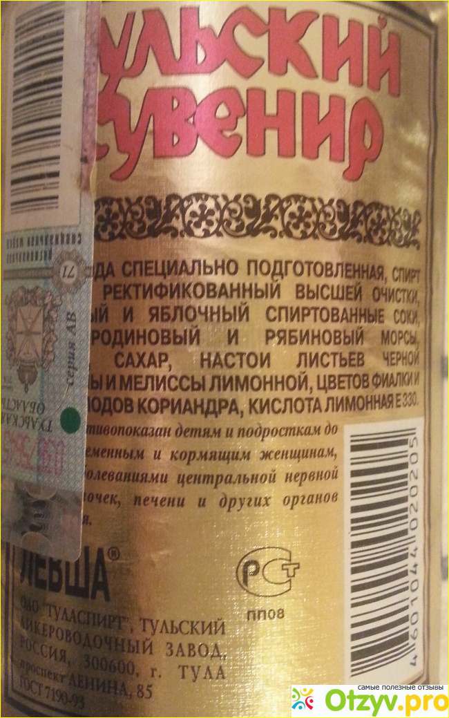 "Тульский сувенир" оказался настойкой из растительно-ягодных компонентов, очень похожей на бальзам.