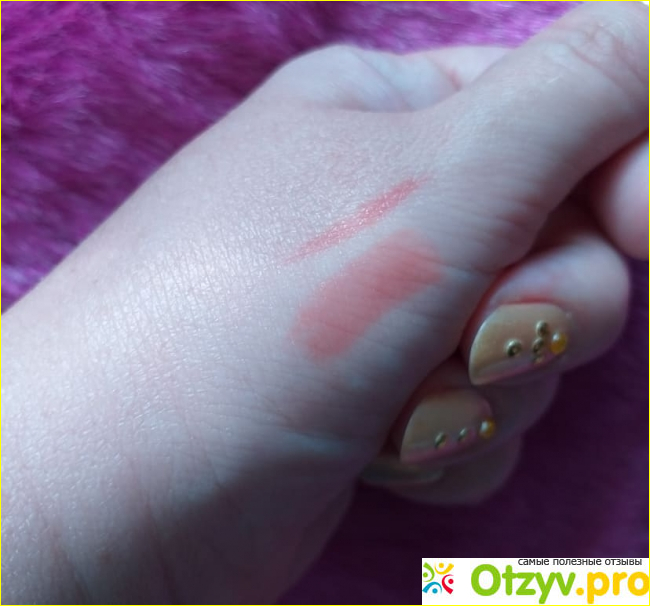Для наглядности покажу вам фото свотча помады лайнера. Справедливости ради отмечу, что свотч очень трудно и далеко не сразу смылся с руки.