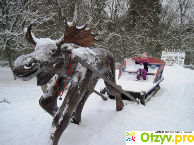 На территории больше всего деревянных скульптур: сказочные герои, месяцы года, знаки животных года. Есть импровизированная мельница и большая живая елка (которую даже умудряются как-то наряжать).