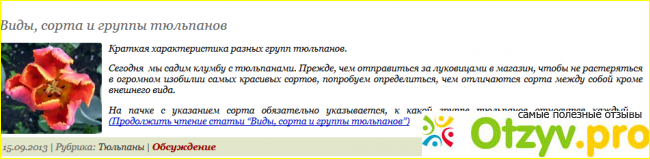 В левой колонке сайта, есть информация которая заинтересует каждого кто не равнодушен к луку всех сортов, тыквам, абрикосам и цветам. Из "свежих записей", даются советы по выращиванию тюльпанов, о вирусах которые могут погубить весь сад, и о многом другом, что заинтересует цветоводов-любителей.