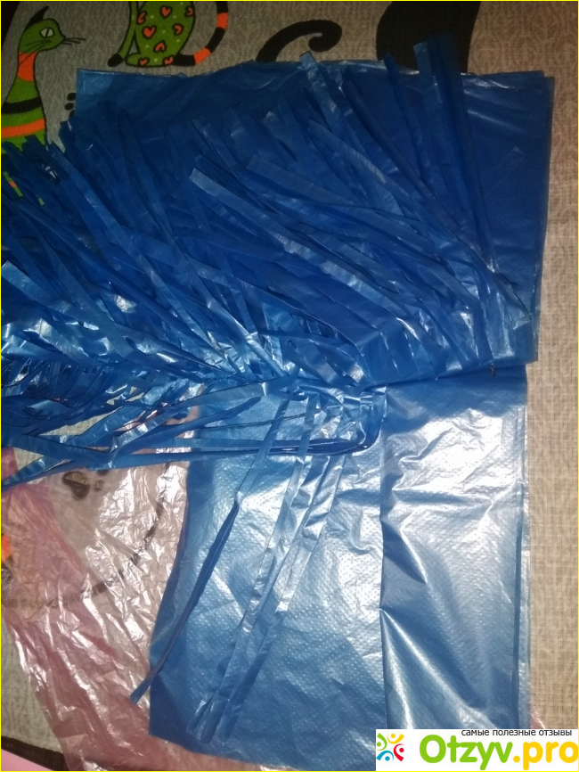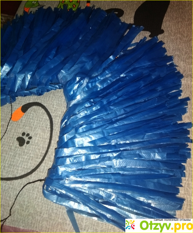 Поиск пакетов нужного цвета и размера не увенчался успехом. По цене: 100 штук небольших «маек» стоит 75 рублей, как раз на один помпон. Но в продаже были только красные и зелёные. Друзья советовали взять пакеты для мусора, но они голубые и черные, что тоже не соответствует заказу. Потом мне удалось найти большие синие пакеты. За 50 штук я отдала 75 рублей (отдельно 1 штука стоит 4 рубля). Но этого количества хватает на два помпона. Проблема в размере, они не должны сильно отличаться от маленьких пакетов, а размер почти в 2 раза больше.