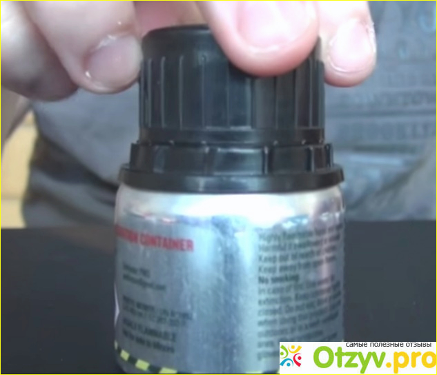 Бутылочка выполнена из алюминия, поэтому она не разобьется в крайних случаях. Достаточно открыть крышку, вдохнуть смесь и приниматься за дело. Причем там 30 мг, чего хватит на несколько раз применения.