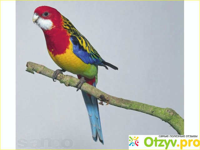 Когда впервые увидела попугая розеллу в зоомагазине то просто влюбилась в него. Это большая цветастая птица, с большой красивой красной головой и умными глазами. Окрас у розелл бывает разный, как стандартный с красной головой, желто-зеленым туловищем и пестрыми крыльями, так и встречаются огненно-красные птицы, с синим хвостом и пестрыми черно-синими крыльями, конечно окрасок еще очень много, но эти основные.