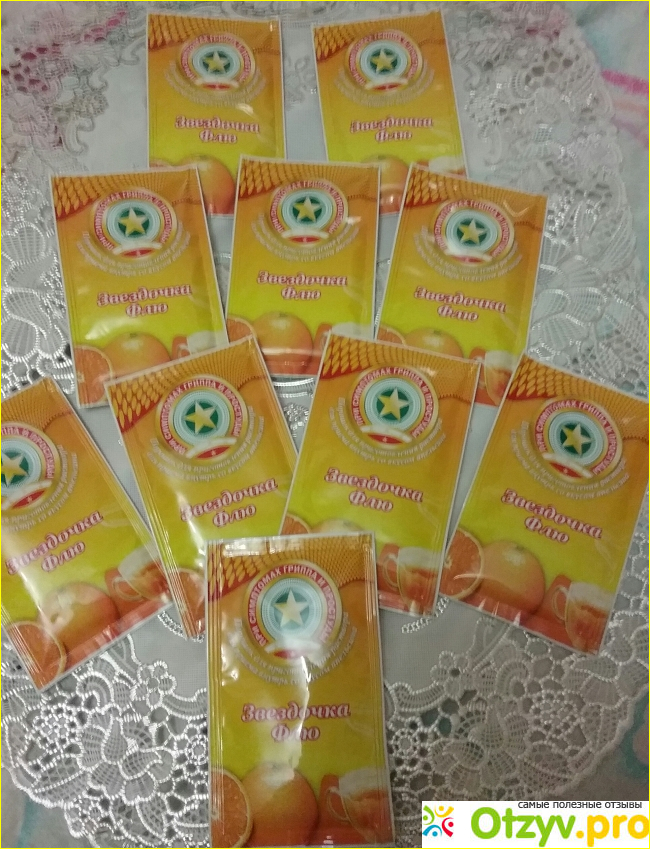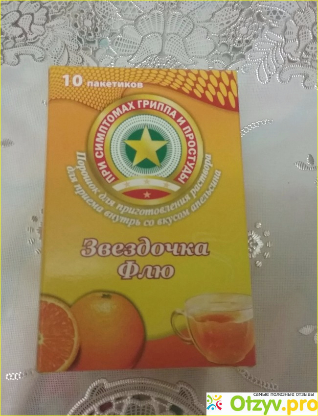 Доброго времени суток. Как начались симптомы орви не стала рисковать и ждать пока все не станет еще хуже и пошла в аптеку, там мне фармацевт предложила звездочка флю, я впервые попробовала этот порошок и знаете была приятно удивлена, никогда не думала что с первого раза мне станет легче, симптомы гриппа утихли температура больше не подняла, и так я пила три дня потом пакетика в день, слава Богу обошлось все без антибактериальных препаратов и без осложнений. Теперь советую этот порошок все своим подругам и цена не дорогая, а самое главное что эффективное.