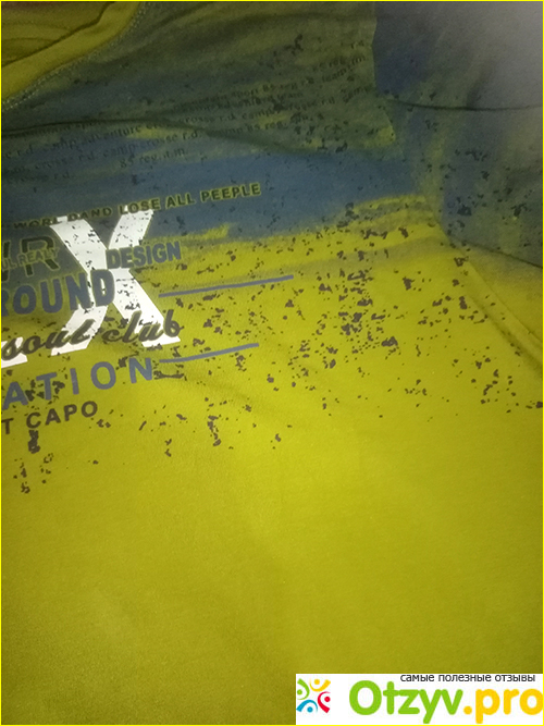 Итак, порошок. Свое предназначение он выполняет, отстирывает хорошо. Вот, к примеру, следы шоколадных пальчиков на футболке мужа. Ребенок постарался. Не специально, конечно