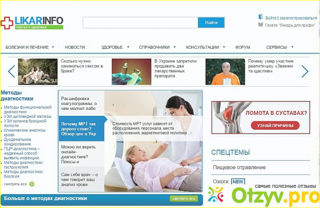 Очень интересный и познавательный портал для тех, кто заботится о своем здоровье и здоровье своих близких. На сайте имеются несколько интересных рубрик, такие как: диагностика болезней, лекарства, красивое тело, грипп и простуда. Что на этом ресурсе определенно радует, так это то, что имеется рубрика "Задать вопрос врачу", в данной рубрике Вы можете абсолютно бесплатно получить консультацию у врачей разных специализаций: офтальмолог, уролог, кардиохирург в том числе и детский психолог.